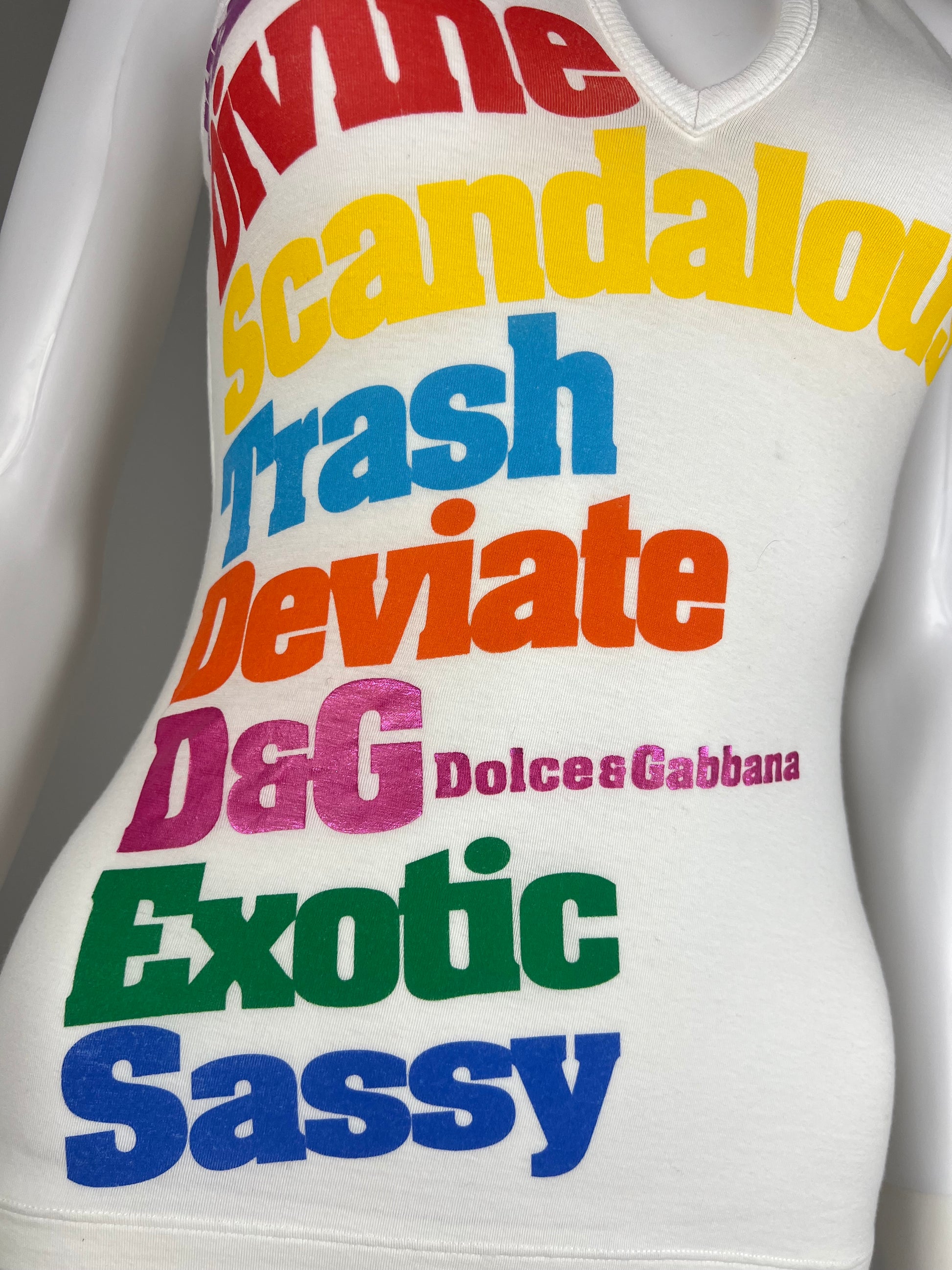 Early 2000s Dolce & Gabbana tank with stacked word print running down the body.